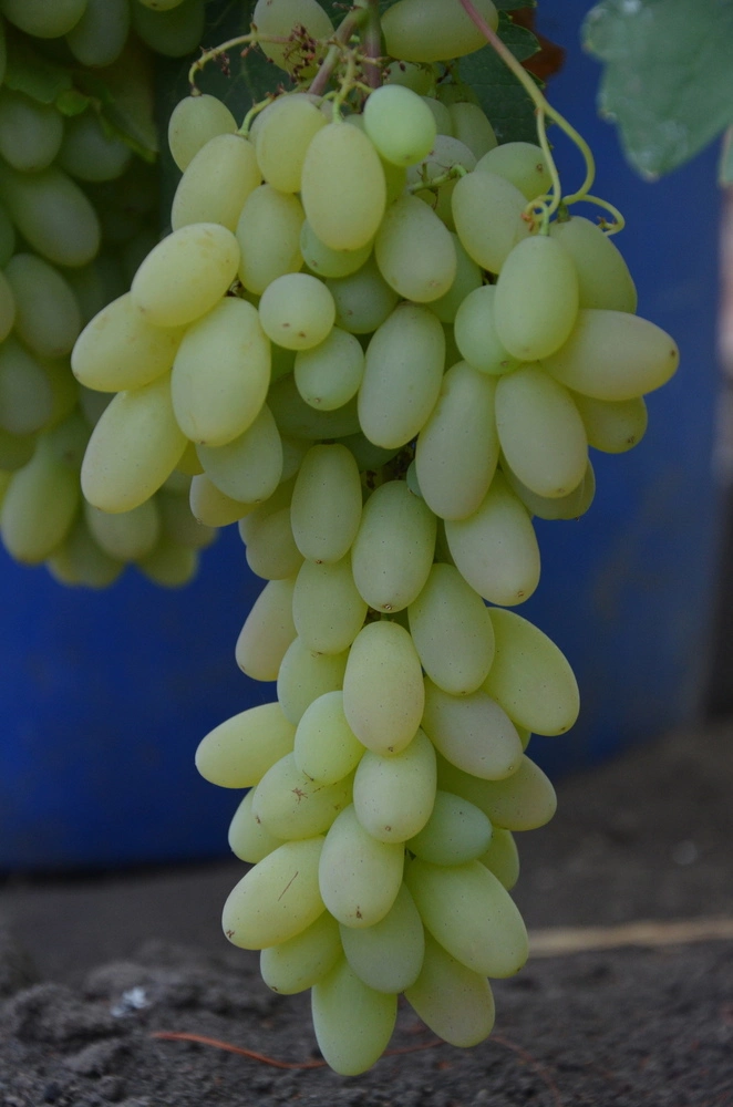 висока. Грони великі, середньої маси 600 - 800 грам. Ягоди подовжені циліндричні, розмір 22мм х 42мм, білого кольору.