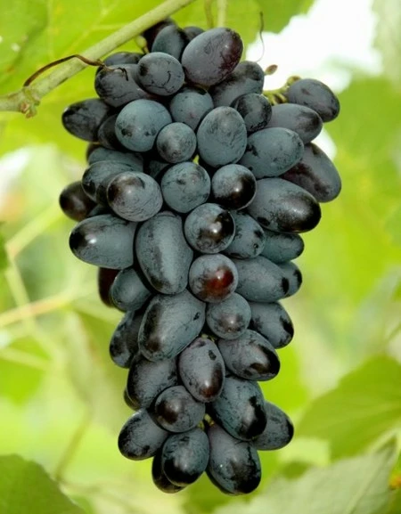Грони середні, циліндроконічні, подовжені, середньої щільності і пухкі, масою 250-350 г. Ягоди темно-сині, подовжено-