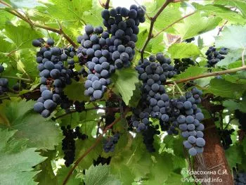 Грони від дрібного до середнього розміру, ягоди невеликі, округлі, темно-сині. Цукронакопичення сорту високе, в